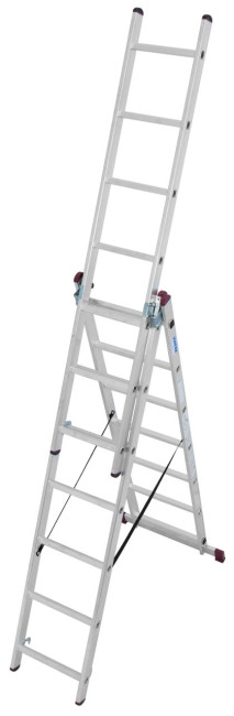 Ezt a multifunkció létrát többféle képpen is lehet használni. Lentebb megtalálja, hogy melyik felhasználási módban milyen munkamagasságokat lehet elérni ezzel az eszközzel. A létra alapvetően 3 részes, a 3 részt összekapcsolva lehet a legmagasabb magasságot elérni, de ez esetben a falnak kell támasztani. Természetesen használható nem csak támasztva, hanem önmagában állva is a létra, amikor klasszikus "A" betűt formáz, ekkor a harmadik tagot rárakva lehet növelni a magasságát, vagy ezen harmadik tagot önálló kisebb létraként használva akár 2 ember két különböző helyen is használhatja ezt az eszközt.
