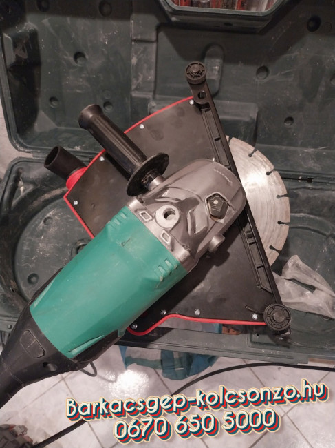 A gépünk lényegében egy nagy teljesítményű, lágyindításos Hikoki sarokcsiszoló, amelyre egy falvágó feltét van szerelve, így lehetőség van arra, hogy ipari porszívóval együtt legyen használva, amely a keletkezett por jelentős részét el tudja szívni. Ipari porszívót is lehet nálunk kölcsönözni természetesen a géppel együtt.