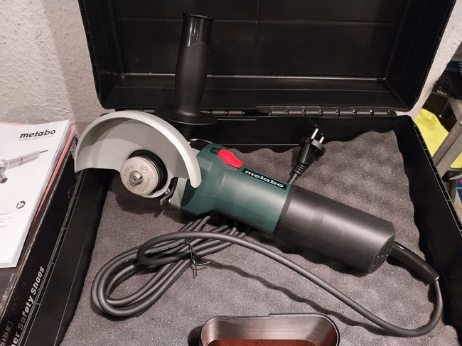 A Metabo-nak ez az erős, 1100W-os flexe ideális munkatárs. 125mm-es koronggal használható. A gépben biztonsági csúszókuplung van, ami annyit jelent, hogy ha a korong megakad valami miatt, a gép automatikusan leáll. Ez egy rendkívül fontos biztonsági funkció, hiszen nem tekeri el az ember kezét és probléma esetén a gépet is védi, ahogy a kezelőt is. A sarokcsiszolóban ezen kívül újraindulás elleni védelem is van, ha elmegy az áram, nem indul el újra magától amikor visszajön. A gép védőburkolata külön szerszám nélkül is állítható, ezzel is könnyítve a biztonságos használatot. A Metabo egy nagy német gyártó, amely elsősorban ipari besorolású gépeivel szerzett hírnevet magának. Ez a márka garancia a robosztus felépítésre, ez a sarokcsiszoló kiválóan használható hosszabb távon is.